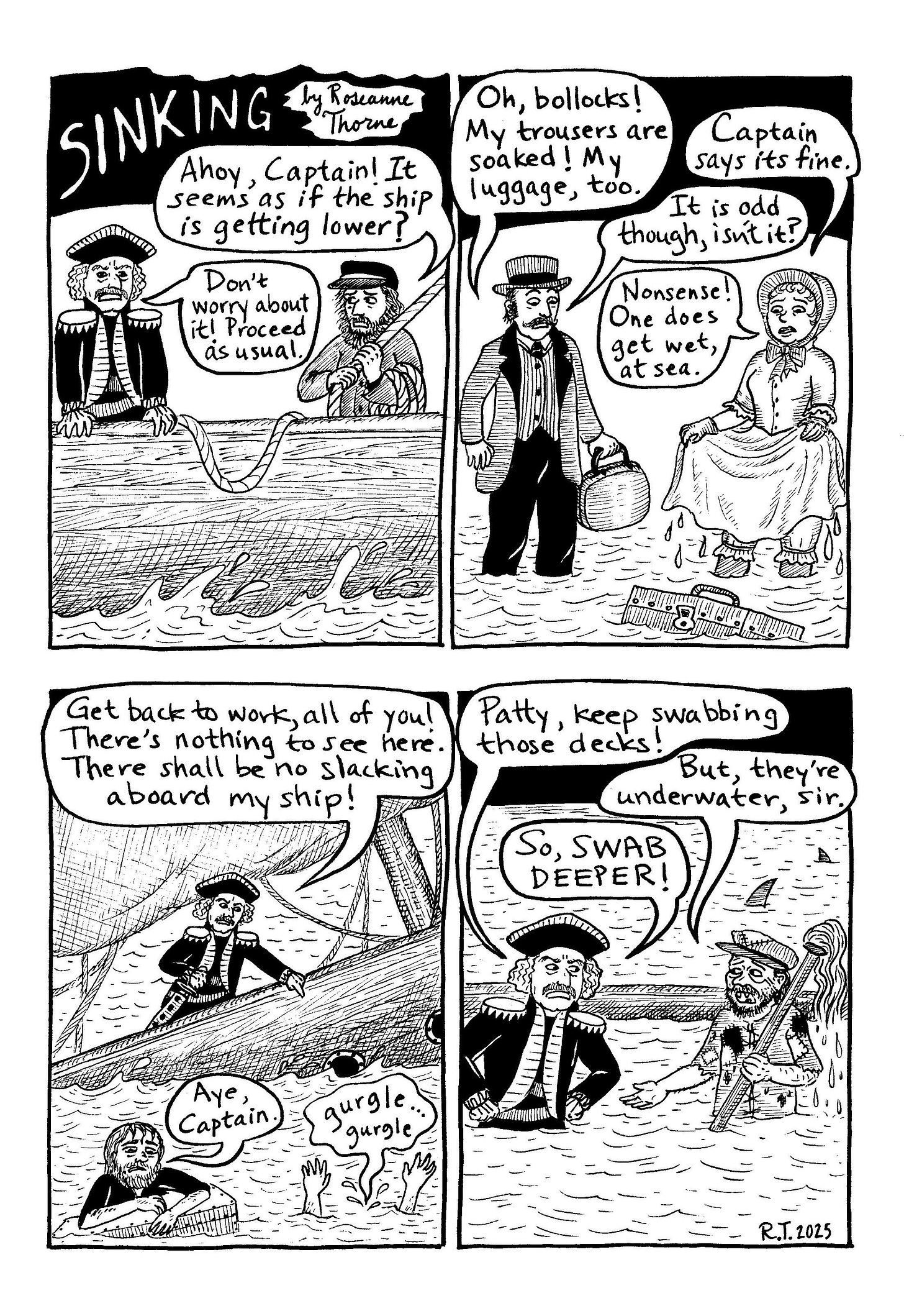 SinkingA timeless metaphor for the situationRoseanne ThorneJul 04, 20251966ShareWhat situation? Reader’s choice. Let us know your interpretation: Leave a commentTo show your appreciation for these free comics, you can leave a comment, share them with a friend, or visit my donation page:https://ko-fi.com/uncouthcomicsSubscribePrevious